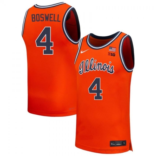 Lead the Orange Crush:Illinois Kylan Boswell #4 Orange Hoops Throwback Jersey - Official Mens Basketball Collection