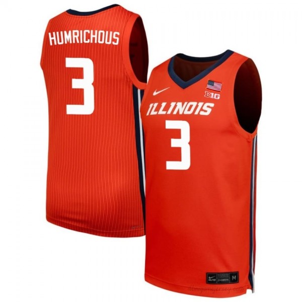 Lead the Orange Crush:Official Ben Humrichous Illinois Jersey - Orange #3 Mens Collegiate Basketball Gear