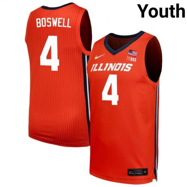 Lead the Orange Crush:Official Kylan Boswell Illinois Jersey - Orange #4 Youth Collegiate Basketball Gear