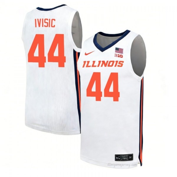 Lead the Orange Crush:Zvonimir Ivisic #44 Illinois White Mens Elite Basketball Jersey - Official On-Court Material
